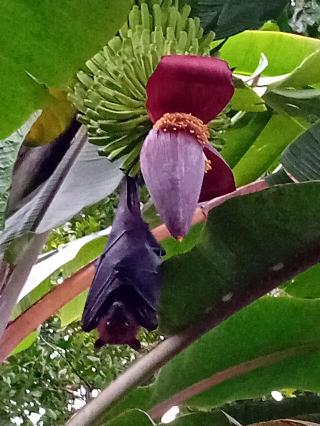 The fruit bat is one of the largest bats in the world. It is nocturnal and feeds mainly on ripe fruit such as mangoes and bananas, and nectar. It eats a lot of fruit, but it is tolerated because it is useful for pollination.